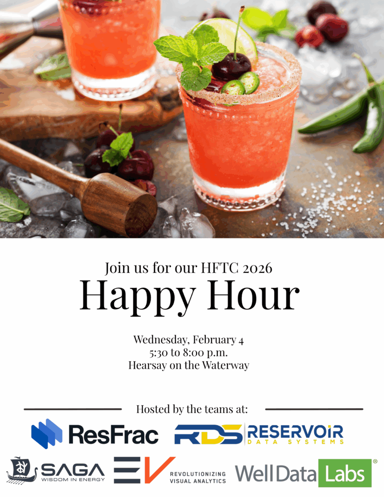 HFTC 2026 is right around the corner! Please join the ResFrac, Reservoir Data Systems, Saga Wisdom, EV Cam, and Well Data Labs teams on Wednesday, February 4th, from 5:30 to 8:00 p.m for our 2026 HFTC Happy Hour!